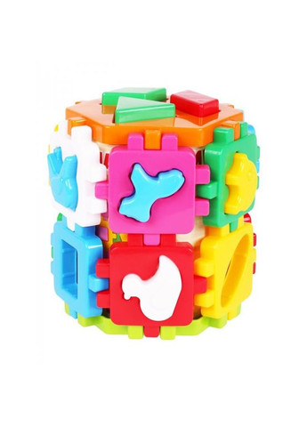 Куб-конструктор з різноманітними геометричними фігурками та фігурками тварин, які вставляються у відповідні отвори основи. Розвиває логічне мислення, моторику пальців, пам'ять. Розмір іграшки: 17х14х14 см.