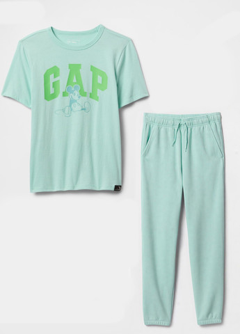 Дитячий комплект GAP. Дитяча футболка Gap Disney Mickey Mouse. Стильна та зручна футболка з логотипом бренду та принтом легендарного Mickey Mouse спереду. Круглий виріз у рубчик. Короткий рукав. М'яка та приємна до тіла тканина. Стильні та практичні трикотажні джоггери. Еластичний пояс на резинці із зав'язками. Дві косі кишені спереду. Манжети штанин на резинках. Усередині утеплені флісом. Відмінна якість