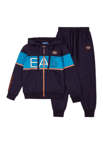 Дитячий спортивний костюм складається із двох частин: Толстовка з бавовняного матеріалу щільністю 800г. Довгі рукава, блискавка спереду, накладні кишені спереду та розрізи внизу. Широкі штани вільного крою з бавовняної тканини. Щільність 800 г/м². З еластичним поясом. Накладні кишені спереду та ззаду. Склад: 100% бавовна