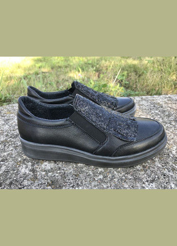 Колір Чорний / Склад верха Натуральна шкіра, Натуральна замша / Фасон Лофери / Застібка Липучки
