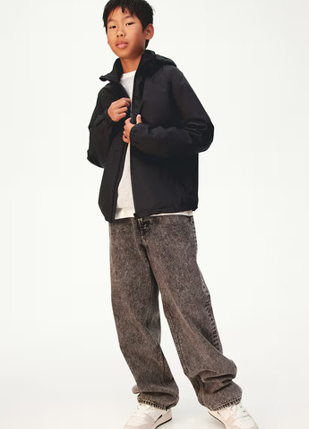 Легка вітровка з тканого матеріалу зі знімним капюшоном на підкладці, коміром-стійкою та блискавкою спереду із захистом підборіддя від натирання. Великі накладні передні кишені з клапаном та рукави із закритою гумкою на манжетах. Низ прямого крою із закругленими краями. На підкладці.