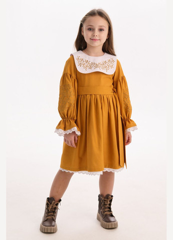 Колір Жовтий / Матеріал Льон / Приналежність Дівчаткам / Довжина виробу Міні / Довжина рукава Довгий