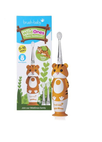 Зубна щітка Sonic WildOne у формі тигреня підходить для дітей від 0 до 10 років, вона служить інструментом для привернення уваги та навчання малюка до гігієни порожнини рота. Щітка має безліч переваг: Зручна та безпечна зарядка за допомогою магнітного USB-кабелю. 4 години зарядки = 28 днів роботи пристрою (за умови прибирання по 2 хвилини двічі на день). 2 швидкості – делікатний/помірний режим (28 000 – 32 000 ударів за хвилину). водонепроникний. Фонове підсвічування, що миготить різнокольоровими вогнями, зацікавить дитину, стимулює до гігієнічної процедури. 2-хвилинний таймер із нагадуванням про зміну зони чищення кожні 30 секунд. Зручна гумова ручка, що не ковзає, легко лягає в руку дитини, не ковзає. Гігієна - присоска на ніжці забезпечує стійкість, зводячи до мінімуму ймовірність перекидання та падіння на підлогу. Двохрівневі щетинки дозволяють одночасно очищати поверхню зубів, ясенні кишені, міжзубні проміжки, масажувати ясна. Упаковка голівки та запасний щітки підлягає вторинній переробці. Тигреня буде радий допомогти вам! Включає в себе 3 змінні наконечники BRB241, які рекомендується замінювати кожні три місяці. Ви також можете придбати їх окремо в нашому магазині.
