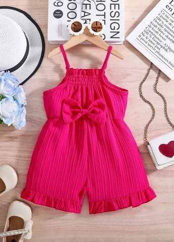 Однотонний комбінезон для дівчаток. Цей комбінезон створений для комфорту та стилю. Він має виріз на тонких бретельках та високу талію. Комбінезон виконаний за фасоном, має складання і бант спереду. Вільний крій та без рукавів. Можна прати у пральній машині або чистити у хімчистці.