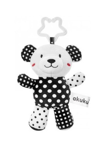 Іграшка-підвіска Akuku (Акуку) Ведмедик - це плюшеве підвісне брязкальце, яке можна легко прикріпити на ліжечко, коляску, гойдалку або автокрісло. Основні переваги: іграшка-підвіска, безперечно, приверне увагу кожної дитини вона оснащена універсальною пластиковою ручкою-гачком, тому її можна прикріпити будь-де вдома і в дорозі виготовлена ​​з м'якого матеріалу, вона може стати найкращою іграшкою для вашого малюка насичені чорно-білі кольори допомагають розвивати концентрацію уваги у перші місяці життя також підвіска розвиває зорове, слухове та моторне сприйняття виріб виготовлений з матеріалів найвищої якості, безпечний для малюків Рекомендації: Утримуйте іграшку в чистоті. Інструкція з прання вказана на етикетці. Можна мити лише поверхню. Перед тим, як дати іграшку дитині, видаліть упаковку. Щоб уникнути ризику задухи, зберігайте упаковку в недоступному для дітей місці. Ретельно перевіряйте іграшку перед кожним використанням. Викиньте за перших ознак пошкодження або зносу. Збережіть інструкцію для подальшого використання. Характеристики Матеріал: текстиль Виробник: Akuku, Польща. Рекомендовано для дітей від народження.