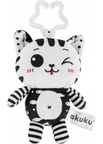 Іграшка-підвіска Akuku (Акуку) Котик - це плюшеве підвісне брязкальце, яке можна легко прикріпити на ліжечко, коляску, гойдалку або автокрісло. Основні переваги: іграшка-підвіска, безперечно, приверне увагу кожної дитини вона оснащена універсальною пластиковою ручкою-гачком, тому її можна прикріпити будь-де вдома і в дорозі виготовлена ​​з м'якого матеріалу, вона може стати найкращою іграшкою для вашого малюка насичені чорно-білі кольори допомагають розвивати концентрацію уваги у перші місяці життя також підвіска розвиває зорове, слухове та моторне сприйняття виріб виготовлений з матеріалів найвищої якості, безпечний для малюків Рекомендації: Утримуйте іграшку в чистоті. Інструкція з прання вказана на етикетці. Можна мити лише поверхню. Перед тим, як дати іграшку дитині, видаліть упаковку. Щоб уникнути ризику задухи, зберігайте упаковку в недоступному для дітей місці. Ретельно перевіряйте іграшку перед кожним використанням. Викиньте за перших ознак пошкодження або зносу. Збережіть інструкцію для подальшого використання. Характеристики Матеріал: текстиль Виробник: Akuku, Польща. Рекомендовано для дітей від народження.