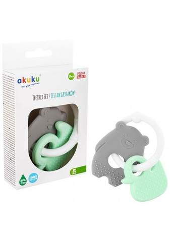 Набір прорізувачів Akuku (Акуку) Ведмедик-Каченя ідеальний продукт у період прорізування зубів, коли ясна сильно сверблять і у дитини виникає гостра потреба кусати. Основні переваги: виготовлений з м'якого еластичного силікону, який пристосовується до ясен дитини легкий та зручний, дитині легко його зловити і утримати різні форми та кольори стимулюють розвиток зорово-моторної координації у дітей охолодіть прорізувач для зубів у холодильнику, перш ніж давати його дитині Характеристики Виробник: Akuku, Польща. Рекомендовано для дітей із 6 місяців.