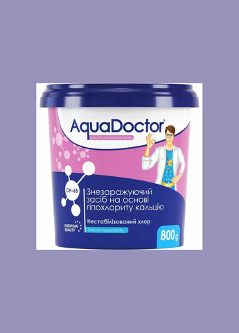Гранульований препарат призначений для виконання первинної (шокової) та регулярної обробки води у басейні. Дезінфектант знищує органічні забруднення: віруси, бактерії та грибки, а також перешкоджає їх розмноженню. Реагент знезаражує застоєну, помутнілу та дуже забруднену воду. Відсутність стабілізатора у складі дозволяє зупинити зростання та знизити концентрацію ціанурової кислоти у вашому басейні без заміни води. Препарат не втрачає концентрації під впливом часу та навколишніх факторів. Рекомендуємо використовувати препарат увечері. Перед використанням виміряйте рівень pH у басейні. Якщо pH знаходиться за межами норми від 7.2 до 7.4, відкоригуйте його за допомогою препаратів AquaDoctor pH Minus або AquaDoctor pH Plus. Спосіб застосування Первинна (шокова) обробка виконується з розрахунку від 7 до 10 грамів гранул на 1 м³ води басейну. Залийте водою необхідну кількість препарату в невеликій чистій ємності, розмішайте та рівномірно вилийте розчин по периметру басейну. Увімкніть фільтраційну систему, вона має пропрацювати від 6 до 8 годин. Дочекайтеся поки пройде від 10 до 12 годин після застосування препарату та заміряйте показники води за допомогою тестерів. Починайте використовувати басейн, якщо вміст вільного хлору відповідає нормі від 0.3 до 0.6 мг/л, рівень pH знаходиться в межах від 7.2 до 7.4, а рівень стабілізатора – ціанурової кислоти – не перевищує 50 мг/м³. Для максимально ефективного результату виконуйте шокову обробку води 1 раз на місяць. Регулярна обробка виконується аналогічним способом. Використовуйте від 2 до 3 г препарату на 1 м³ води 1 раз на 2 або 3 дні із запуском фільтраційної системи для кращого перемішування.