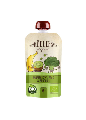 Пюре Rudolfs (Рудольфс) Pouch Смузі Банан, ківі, броколі з зеленим горошком внесе необхідну різноманітність та корисні вітаміни до раціону вашої дитини. Готове фруктово-овочеве пюре в зручній упаковці! Діти можуть тримати і їсти самостійно, що є важливою частиною розвитку дитини. Зручно на прогулянці, в автобусі, в машині або вдома. Основні переваги: 100% органічний продукт та натуральний склад відмінно підходить для розширення раціону і розвитку смакових уподобань дитини зручний варіант під час подорожей та прогулянок не містить глютен, ароматизаторів, барвників, консервантів та ГМО без додавання цукру містить тільки природні компоненти Спосіб приготування: продукт готовий до вживання, перед вживанням розімніть упаковку починати прикорм з невеликих порцій, використовуючи ложку, та поступово збільшуйте кількість не залишайте дитину без нагляду під час їжі безпосередньо з упаковки Примітка: перед введенням продукту в раціон дитини проконсультуйтеся з педіатром можлива індивідуальна підвищена чутливість організму вашої дитини до одного з інгредієнтів продукту Умови зберігання: при кімнатній температурі після відкриття - в холодильнику не більше 48 годин кінцева дата споживання "Вжити до" і номер партії див. на упаковці Характеристики Поживна цінність (на 100 г продукту): жири – 0.3, г (з них насичені жирні кислоти – 0 г) вуглеводи – 12 г (з них цукри – 10 г) харчові волокна – 2 г білки – 0,9 г сіль – 0 г Енергетична цінність (на 100 г продукту): 242 кДж (57 ккал) Маса нетто: 110 г Виробник: Rudolfs, Латвія. Рекомендовано для дітей віком від 6 місяців.