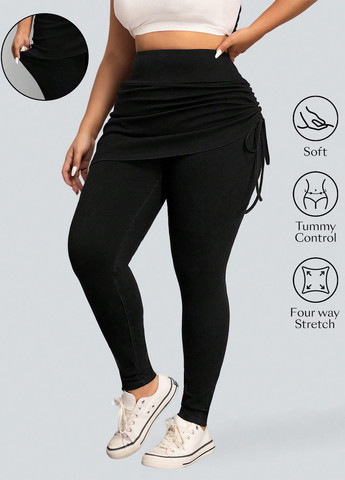 Вузькі штани SHEIN EZwear із високою талією, чорні. Ці чорні вузькі штани забезпечують зручну посадку. Висока талія та вкорочена довжина. Тканина - трикотаж на основі бавовни середньої еластичності (97% бавовна, 3% еластан). Догляд: прання машини або професійна хімчистка.