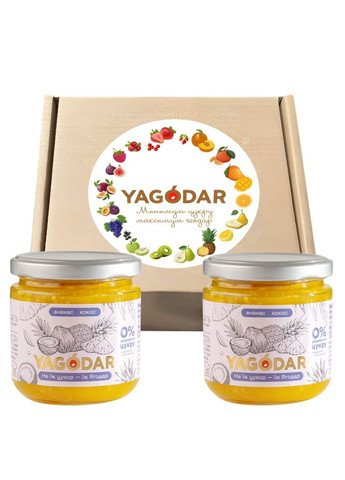 Подарунковий набір "7 Нових смаків Ягодар без цукру", 1.5 кг Склад набору джемів: Абрикос - апельсин, без цукру, 210 г; Ананас - кокос, без цукру, 210 г; Гарбуз - апельсин з корицею, без цукру, 210 г; Полуниця - суниця, без цукру, 210 г; Чорна смородина, для діабетиків, без цукру, 210 г; Запечене яблуко - червона смородина, без цукру, 210 г; Полуниця, для діабетиків, без цукру, 210 г; Інгредієнти джемів: Багато швидкозаморожених ягід і фруктів (43-70%); Соки фруктів і ягід; Пектин; Підсолоджувач або низький вміст цукру: у різних джемах використовуємо різні підсолоджувачі: cорбіт, стевія, гфс. Детальний склад кожного джему читайте на сайті . Також там є дані про поживну цінність, зокрема вуглеводи і цукри. Умови зберігання: Температура: від 0 C до 25 C Вологість повітря: не більше 75% Зберігати в захищених від сонячних променів приміщеннях в оригінальній нерозкритій упаковці Після відкриття продукту зберігати в холодильнику та використовувати протягом 7 днів Примітка: Можливо виділення фруктово-ягідного соку Дата виробництва та "Краще спожити до" вказані на кришці Номер партії L відповідає даті виробництва Під час відкриття банки переконайтеся, що є ущільнювач. Якщо його немає, не використовуйте продукт. Всі джеми набору на пектині це веганський органічний натуральний продукт без желатину. Найчастіше його купують на подарунок братові, татові, дружині, чоловікові. Але також як здорові дієтичні насолоди дітям і собі. Найкраще вони підходять для млинців, вафель, тортів, рогаликів, печива десертів. Також їх додають у чай, роблять компот, вживають з м'ясом, рибою, гарнірами, кашами та просто їдять ложкою. Набір може містити джеми з понад 10% доданих поліолів (сорбіт), використання яких дозволено законодавством. Надмірне споживання може спричинити послаблювальний ефект. Не пропустіть шанс спробувати це ексклюзивне поєднання смаків! Пориньте у світ яскравих ароматів та натуральних смаків з нашим боксом джему! Купуйте зараз.