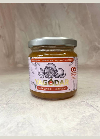 Мандариновий джем з апельсином та мускатним горіхом без цукру Джем на пектині – натуральний веганський загусник, що не містить желатин, з додаванням свіжих домашніх ягід та фруктів. Найкраще вони підходять для млинців, вафель, тортів, рогаликів, печива та інших десертів. А ще їх можна додавати в чай, готувати з них компот, насолоджуватися м'ясом, рибою, гарнірами, кашами або просто їсти ложкою. Склад: фруктова частина: 46% (мандарин заморожений – 32%, апельсин пюре – 14%), підсолоджувач: глюкозно-фруктозний сироп – 44%, сік апельсина концентрований – 8%, згущувач: пектин, сік лимона концентрований. Прянощі натуральні: горіх мускатний; Поживна цінність на 100 g: Енергетична цінність 595,0 кДж/ 142,2 ккал Білки 0,36 г Жири 0 г Вуглеводи з них природні цукри 35,2г 34,9 г Сіль 0 г Харчові волокна 0,4г Умови зберігання: Температура: від 0°C до 25°C Вологість повітря: не більше 75% Зберігати у захищених від сонячних променів приміщеннях в оригінальній нерозкритій упаковці Після відкриття продукту зберігати в холодильнику та використовувати протягом 7 днів Примітка: Можливе виділення фруктово-ягідного соку Дата виробництва та "Краще споживати до" вказані на кришці Номер партії L відповідає даті провадження Під час відкриття банки переконайтеся, що є ущільнювач. Якщо вона відсутня, не вживайте препарат. Вага: 210 г Виробник: Україна