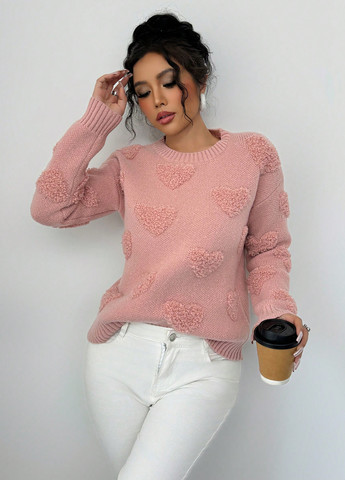 Жіночий светр з малюнком серця. Цей повсякденний светр має малюнок серця та дизайн круглого вирізу. Підходить для носіння восени та взимку. У светра рукава спущені конструкція гумки.
