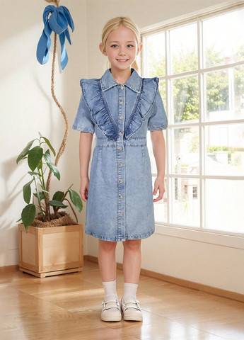 Повсякденна джинсова сукня з оборкою та спереду на ґудзиках.