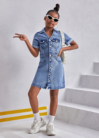 Матеріал Джинс, Бавовна / Колір Блакитний / Фасон Сукня-сорочка / Довжина виробу Міні / Стиль Денім, Кежуал