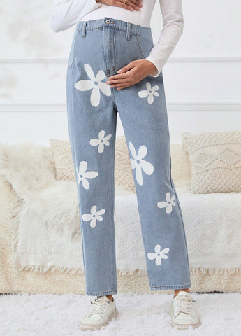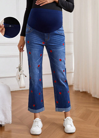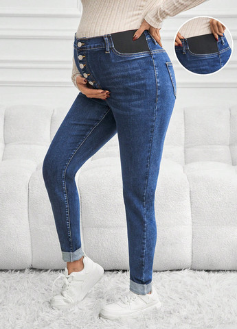 Джинси для вагітних - повсякденний стиль. Ці джинси крою, що облягає. Еластичний пояс забезпечує комфорт. Джинси мають кишені і необроблений нижній край. Виготовлені з деніму з додаванням бавовни, поліестеру, віскози та еластану. Можна прати у пральній машині або піддавати хімчистці.