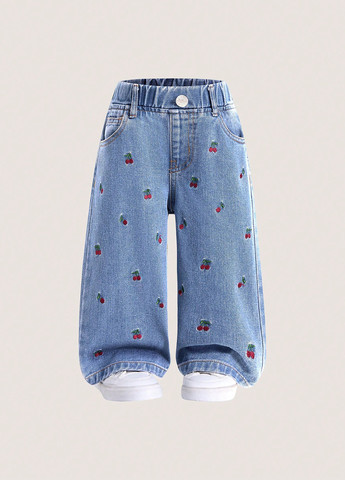 Джинси SHEIN Baby Girl із вишивкою. Ці повсякденні джинси для дівчаток. Вони мають симпатичний дизайн. Мають кишені. Рекомендується прати у пральній машині.