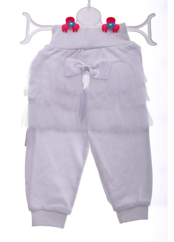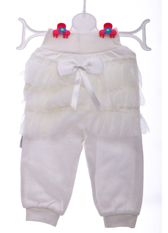 Трикотажні штани на дівчинку. Тканина бавовна. Низ штанів з манжетами, м'яка євро-гумочка. Штани декоровані рюшами та бантом на поясі Виміри Розмір F - Довжина по шаговому шву см G - Напівобхват талії см I - Довжина виробу від пояса см 62 18 21 37 68 20 22 39 Таблиця віку Розмір Вік 62 от 0м до 3м 68 от 3м до 6м
