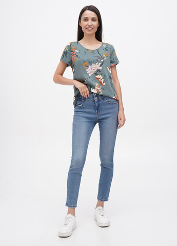 джинси середньої посадки по талії, застібаються на гудзик і блискавку, спереду дві прорізні кишені, ззаду дві накладні. На розмір 27/32 довжина внутрішнього шва: 76 см, ширина по низу виробу (напівобхват): 13 см.
