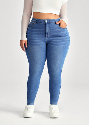 Ці джинси SHEIN CURVE+ забезпечують вузьку посадку, що облягає. Вони виготовлені із тканини середньої еластичності для комфорту. Джинси мають високу талію та застібку-блискавку. Особливості включають кишені та підкладку для тепла. Вони розроблені для щільної, зручної посадки.