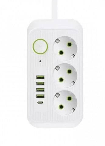 Мережевий фільтр має 3 євро-розетки із заземленням, 4 автоматичних USB порти та 1 порт Type-C. Роз'єми USB можуть видавати максимум 3.4A. Розумний чіп автоматично визначає необхідну силу струму і підлаштовується під підключений пристрій. Кабель подовжувача має довжину 3 метри. На корпусі пристрою зручно розташована кнопка вмикання/вимикання живлення всього подовжувача.