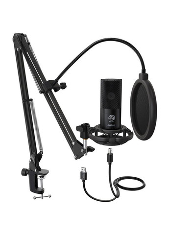 Для прихильників ігор і стримерів компанія Fifine випустила мінімодель мікрофона K050 на підставці. Завдяки своїй компактності, мікрофон прекрасно поміщається в портфель або сумку, а важить він приблизно 300г У підставці вмонтована USB-плата, яка робить його окремим звуковим пристроєм. Як почати роботу: 1) Витягніть мікрофон із коробки, під'єднайте до USB-роз'єму вашого комп'ютера. 2) Після під'єднання мікрофон автоматично почне інсталяцію драйверів. 3) Пристрій готовий до використання. Можна починати записувати. Характеристики: Живлення: 5В 90мA USB power Під'єднання: USB 2.0 Спрямованість мікрофона: Кардіоїда Чутливість -47 дБ ±3 дБ (за 1 кГц) Діапазон частот 50 Гц – 17 кГц Відношення сигнал/шум 55 дБ Еквівалентний рівень шуму – 80 дБ Висота мікрофона: 15.2см із підставкою Діаметр підставки: 6.2 см Довжина шнура: 2 м