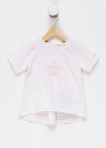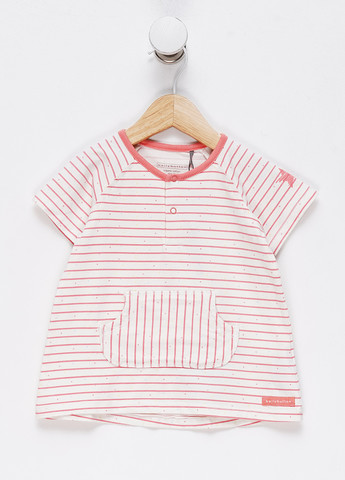 Bellybutton- це німецький бренд, відомий своім високоякісним та стильним дитячим одягом. Асортимент продукціі для хлопчиків та дівчат дуже різноманітний: куртки, комбінезони, светри,брюки, футболки та одяг для немовля з органічноі бавовни. Футболка з м'якого трикотажу у рожеву смужку, декорірована принтом у вигляді зіркі, на спині м'яка складка, кругла горловина з застібкою на кнопках до 80 розміру ( розмір 80, 86 без застібки). Розмір 56- 0- 2 місяця, 62- 3-5 місяців, розмір 68 - 6-8 місяців, розмір 74- 9- 11 місяців, розмір 80- 12- 14 місяців, розмір 86 - 15- 17 місяців.