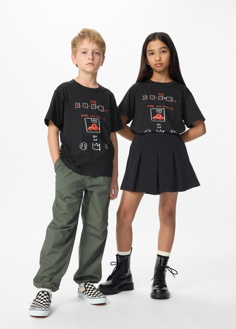 Дитяча футболка NY POP ART UT Uniqlo. Жан-Мішель Баскія, ікона Нью-Йорка 1980-х років, за свою коротку кар'єру прославився роботами, натхненними його раннім вуличним мистецтвом, і самобутньою іконографією, часто пов'язаною з історією мистецтва. Його картини, малюнки та гравюри надихнуті різноманітними джерелами: від африканської, ацтекської та грецької культур до американської культури, включаючи джаз, бейсбол, а також суспільно-політичні події. Зручна футболка із щільного м'якого матеріалу. Круглий виріз горловини, короткі рукави. Принт і логотип спереду. Відмінна якість.