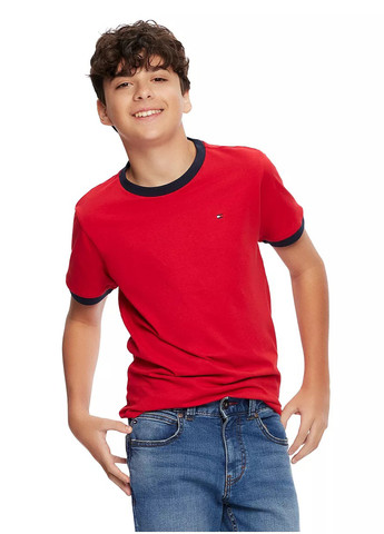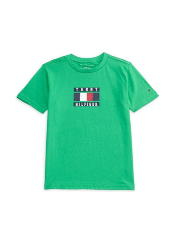 Дитяча футболка Tommy Hilfiger. М'яка та приємна до тіла футболка Tommy Hilfiger. Повсякденна зручна посадка. Круглий виріз та короткі рукави. Спереду оздоблена логотипом бренду, на рукаві вишитий прапор-логотип. Відмінна якість.
