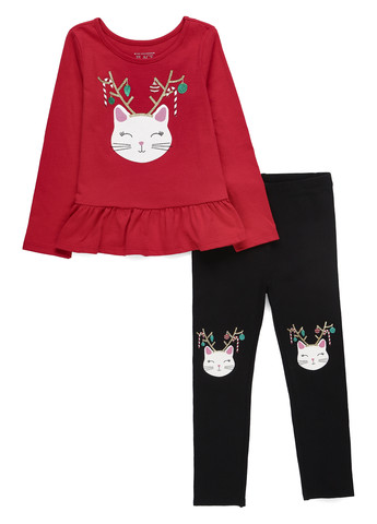 Колір Комбінований / Склад лонгслів: 60% бавовна, 40% поліестер/легінси: 94% бавовна, 6% спандекс / Фактура Гладка / Візерунок Кішки