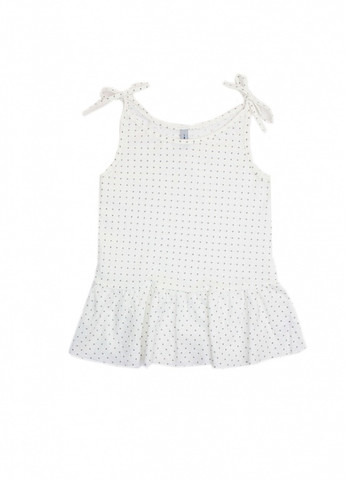 Легка, стильна маєчка, виконана з ситцю, розрахована на дівчаток у віці 6-18 місяців. Одягати її можна кожен день, не переживаючи про появу роздратування, так як для пошиття використовувався бавовняний матеріал високої якості. Біла маєчка з рукавами-метеликами і друкованим принтом у вигляді усміхненого сонечка і невеликий написи - відмінний вибір для літа. Її можна поєднувати з спідницями і шортами, надягаючи на дитячий майданчик або в садок.