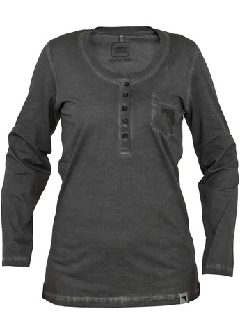 Glock Perfection Women – це легка, зручна жіноча футболка з довгими рукавами виконана у кольорі сірий меланж. Лонгслів виготовлений з трикотажу щільністю 180 г/м2 та має у складі 100% бавовну. Довжина рукавів регулюється за допомогою ґудзиків. Також попереду є панель з ґудзиками для більш комфортного одягання-знімання футболки. Лонгслів Glock Perfection має нагрудний карман на якому знаходиться чорний принт з зображенням пістолета. Також знизу є бірка з пістолетом, а позаду футболки - невеликий логотип компанії GLOCK.
