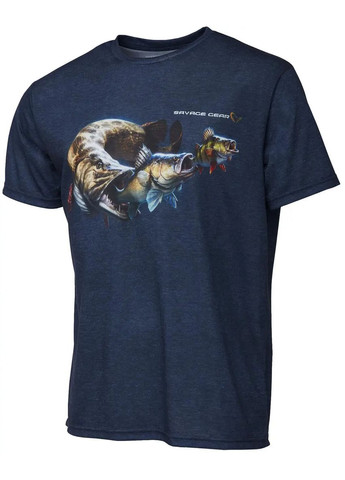 Футболка Savage Gear Cannibal T-Shirt класичний верхній одяг для літнього періоду, виготовлений зі 100% поліестеру. Завдяки використанню сучасної синтетичної тканини, вона не зминається, швидко сохне та дозволяє тілу дихати. Особливістю даної футболки є фірмовий принт на грудях, який легко впізнаваний у колі рибалок-спінінгістів.