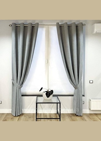 Штори Мікровелюр/Diamond на Люверсах з підхватами. Колір тканини Сірий Колір люверсів Сірий-матовий/Сатин/Хром.мат. Розмір люверсів 35-55мм, міцний пластик Розмір штор: • Ширина штор Вибирається в розмірному ряду. Для того,що б штори на люверсах мали гарний вигляд на Вашому вікні, потрібно правильно розрахувати ширину штор і кількість люверсів у кожній шторі. 1. Кількість тканини потрібно розраховувати порівняно до ширини карнизу, в пропорціях: від 1:2 до 1:2,5. Такі пропорції формують гарні фалди (склади), на карнизі. 2. Кількість люверсів у шторі має бути - парною, тому що 2-люверси утворюють: 1-фалду (складу). • Висота штор 250 см Висота для штор на Люверсах — вимірюється від верхнього краю труби (карниза). У готових комплектах штор, висота вказана від верху люверса (за внутрішнім диаметром), до низу виробу. Габаритна висота штор буде ~ на 3 см - більше, зазначеної в оголошенні. Висота штор може бути до 270 см (від внутрішнього діаметра люверсу) - на вартість не впливає. Напишіть потрібну висоту під час оформлення замовлення, якщо висота штор потрібна від 275 см і вище, Вам зроблять розрахунок вартості штор, для зазначених у замовленні, розмірів. Перелік розмірів штор для замовлення • Ширина кожної штори - 140 х 8-люверсів • 2шт • Ширина кожної штори - 150 х 10-люверсів • 2шт • Ширина кожної штори - 175 х 12-люверсів • 2шт • Ширина кожної штори - 205 х 14-люверсів • 2шт • Ширина кожної штори - 235 х 16-люверсів • 2шт • Ширина кожної штори - 265 х 18-люверсів • 2шт • Ширина кожної штори - 295 х 20-люверсів • 2шт • Ширина кожної штори - 325 х 22-люверсів • 2шт • Ширина кожної штори - 355 х 24-люверсів • 2шт • Ширина кожної штори - 385 х 26-люверсів • 2шт Пропоновані розміри ширини штор, розраховані так, щоб відстані між люверсами, утворювали середні за величиною фалди. Вибрати необхідний розмір ширини штор, Ви можете у розмірному ряду, який розташований біля кнопки - купити Характеристика матеріалу для штор Тканина Мікровелюр/Diamond - м'яка на дотик, має не велику ворсистість, не важка, має середню щільність переплетення волокон (ниток), це дає змогу, формувати легкі та об'ємні фалди (склади), у виробах. Тканина має високу зносостійкість, після прання (см. "Рекомендації з догляду") зберігає первинний вигляд, не деформується, не змінює колір. Світлозахист тканини Вдень, при яскравому сонячному світлі, тканина Мікровелюр/Diamond, закриває сонячні промені на 30-40%. Коли вдень похмуро, або у вікно не потрапляють прямі сонячні промені, світлозахист буде до 50%. У вечірню та нічну пору, коли в приміщенні увімкнене освітлення, закриває вікно з вулиці на 50-70% Призначення Тканина для штор, покривал, чохлів, декоративних наволочок на подушки. Штори з цієї тканини, добре підійдуть до будь-якого типу приміщень - квартири, офіси, житлові будинки... Виробник тканини Туреччина Висота тканини у рулоні 300 cm Склад 100 % ПЕ Вага/щільність 675 г/м Застосування Штори завширшки 140 см × 2 шт., підходять на карниз завширшки від 100 см до 160 см. Якщо штори використовуватимуться як декоративні, тобто вони не рухатимуться по карнизу, для повного закриття вікна, карниз може бути будь-якої ширини. Карниз для штор на Люверсах Для цих штор карниз може бути тільки трубчастий, труба карниза може мати різний діаметр від D-14 до D-35. Спосіб кріплення на карниз На люверсах. До комплекту входить • Штори 2 шт. обраної ширини - кожна штора. • Підхвати 2 шт. Висоту шт