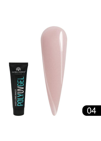 Полігель для нарощування нігтів із шимером Global Fashion 30 г №04Полігель - це інноваційний продукт, консистенція із суміші акрилу та гелю, поєднує в собі найкращі якості професійних матеріалів для нігтьового сервісу. Полігель (акригель, акрил гель, акрилатик) використовують для нарощування, зміцнення і ремонту нігтів. Нігті виходять міцними, але дуже природними, тонкими. Полігель підходить як для нарощування на верхні форми, так і для паперових шаблонів, для добудовування форми. Полігель дає змогу змоделювати за лічені секунди будь-яку форму нігтя, довжину, ефективно зміцнити тонкі, ламкі нігтики. Володіє твердістю акрилу та еластичністю гелю, не розтікається. Підходить як під подальший дизайн гель-лаком, так і як самостійний колір. Для викладки рекомендується використовувати конструюючу рідину Slip Solution від Global Fashion, що дає змогу пензлю плавно ковзати матеріалом і максимально його рівномірно розподіляти. вимагає використання тонкої підкладки з еластичної бази.Полімеризується в LED-лампі 1 хвилину, в UV-лампі 2 хвилини.Ціна вказана за 1 шт.