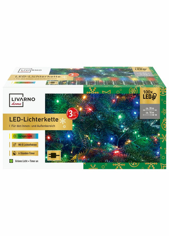 Світлодіодна декорація стане чудовим вибором для прикрашання саду, балкона або тераси. Вона підходить як для зовнішнього, так і для внутрішнього використання. Конструкція складається з п’яти з’єднаних між собою сніжинок, кожна з яких оснащена трьома світлодіодами холодного білого кольору. Освітлення працює від трьох батарейок типу АА, що входять у комплект, і не потребує підключення до електромережі. Вбудований 6-годинний таймер забезпечує автоматичне вмикання щодня у вибраний час, також передбачено ручне керування. Має захист від бризок води (IP44). Загальна довжина – 1,9 м, довжина кабелю живлення – 0,5 м, відстань між стрижнями – приблизно 35 см, висота з шипом – 34,5 см. Виробник Німеччина.