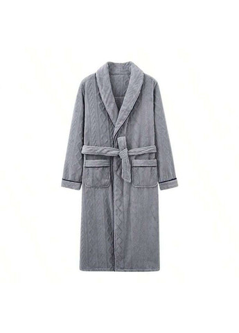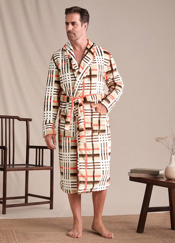 Цей чоловічий халат забезпечує комфорт на осінь та зиму. Він має картатий дизайн та вільний крій. Халат включає пояс та кишені. Звичайні рукави завершують дизайн. Тканина не тягнеться.