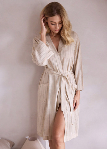 Цей халат – втілення естетики стриманої розкоші. Його білий колір символізує чистоту та легкість, а фактурний муслін із ніжною лляною ноткою додає виробу шляхетного вигляду.
