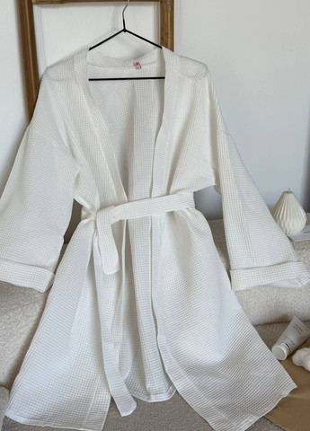 Колір Білий / Матеріал Бавовна, Вафельний / Застібка Без застібки, На зав'язках / Візерунок Однотонний