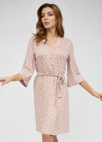 Літній халат із коротким рукавом на змійці. Модель середньої довжини, дві бічні кишені, пояс для фіксації. Горловина виробу прикрашена стразами.