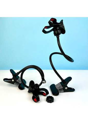Цей тримач - універсальна підставка для смартфона, що дає можливість дивитися відео і спілкуватися, звільнивши руки і займаючи комфортне положення. Особливості: - гнучка верхня секція; - фіксатори із захистом від подряпин; - підходить для спинки ліжка, журнального столика, робочого та кухонного столу Характеристики: - матеріал: авіаційний алюміній, пластик; - кріплення з гвинтовим затискачем: 90 мм; - обертання центральної секції: - по горизонталі: 360°; - по вертикалі: 180°; - обертання тримача для смартфона: 360°; - підходить для смартфонів шириною 64-90 мм.