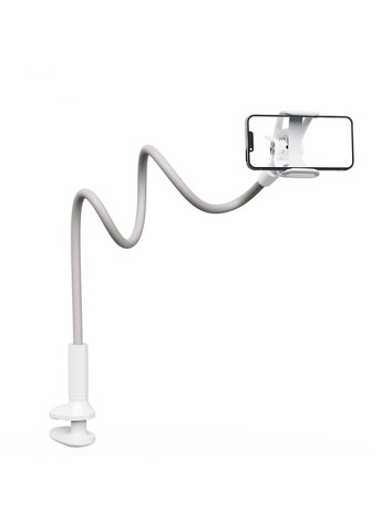 Цей тримач - універсальна підставка для смартфона, що дає можливість дивитися відео і спілкуватися, звільнивши руки і займаючи комфортне положення. Особливості: - гнучка верхня секція; - фіксатори із захистом від подряпин; - підходить для спинки ліжка, журнального столика, робочого та кухонного столу Характеристики: - матеріал: авіаційний алюміній, пластик; - кріплення з гвинтовим затискачем: 90 мм; - обертання центральної секції: - по горизонталі: 360°; - по вертикалі: 180°; - обертання тримача для смартфона: 360°; - підходить для смартфонів шириною 64-90 мм.