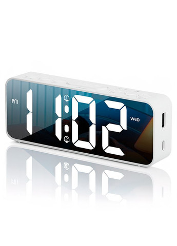 Цифровий дзеркальний годинник LOSSO Premium BASIC - електронний годинник у класичному дизайні з будильником, індикацією дня тижня та контрастним білим підсвічуванням часу. Годинник має великі цифри на дисплеї, три режими яскравості, широкий кут огляду екрана та живлення через Type-C кабель. Дзеркальний настільний годинник Losso Електронний годинник LOSSO Premium BASIC виконаний у класичному сучасному дизайні із дзеркальною робочою поверхнею та матовим корпусом із якісного пластику. Дисплей годинника відображає час, налаштовані будильники та день тижня. За допомогою окремої кнопки на корпусі можна перемкнути режим дати і температури. Розділові крапки між годинами і хвилинами можуть світиться постійно, можуть блимати - ця функція змінюється шляхом тривалого натискання на кнопку «мінус». Екран будильника має три режими яскравості та додатковий режим повністю вимкненого екрана. Це дає змогу зручно використовувати годинник у будь-який час доби. Також пристрій має функцію автоматичного перемикання яскравості дисплея за заданими налаштуваннями виробника. Для цього годинник необхідно перевести в спеціальний режим. Настільний годинник LOSSO Premium оснащений двома незалежними будильниками з налаштованим режимом повтору, що не дасть Вам проспати на роботу, важливу зустріч. Живлення пристрою здійснюється від мережі через кабель Type-C. Для збереження часу при відключенні електрики у відсік на задній панелі необхідно вставити 3 батарейки типу ААА. Це дасть змогу годиннику повернутися до правильного часу в разі відновлення живлення. Другий варіант підключення будильника - живлення від батарейок (без підключення кабелю). Таке під'єднання передбачає тільки режим роботи в енергоощадному режимі, коли дисплей годинника вимкнено, і він активується на 8 секунд за допомогою натискання кнопок на корпусі пристрою. Увага! Дисплей будильника при живленні тільки від батарейок вимкнений і активується натисканням кнопки на 8 секунд. У разі під'єднання пристрою до мережі через кабель, екран пристрою аткивен постійно. Батарейки також необхідні для збереження часу під час відключення живлення! Особливості настільного LED годинника Losso Кілька режимів яскравості дисплея з можливістю її автоматичної зміни Індикація часу, дня тижня, будильників на головному екрані Перемикання кнопкою екрана з температурою, датою Робота від кабелю з конектором типу Type-C Формат часу відображається у двох варіантах 12/24 Годинник із підсвічуванням має 2 будильники з функцією повтору та можливістю налаштування на дні тижня До комплекту входить: Годинник Шнур без блока живлення Інструкція Для запобігання можливості подряпати дзеркало, поверхня годинника заклеєна захисною плівкою, яку необхідно зняти перед початком використання.