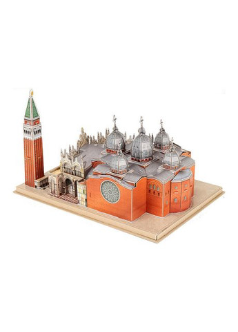 Зібравши тривимірний пазл від компанії CubicFun, ви отримаєте об'ємну модель відомої Площі Святого Марка - головнійної міської площі Венеції. Модель виходить дуже реалістична, з високою деталізацією. А головне, всі 107 частин пазла складаються разом без клею або використання будь-яких інструментів. Набір включає каталог ібарвистими фотографіями пам'яток Венеції. Матеріал пазлів - штампований пінокартон. Набір рекомендований дітям віком від 8-ми років.