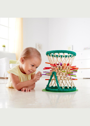 Головоломка Hape Pallina з кульками виготовлена з бамбука і зацікавлює своєю незвичною формою й безліччю ігрових елементів. Гра з головоломкою передбачає кілька варіантів. Молодші діти можуть закидати кульки в кошик, а старші – спробувати витягнути палички, аби кульки не повипадали. Виграє той, хто витягне всі свої палички. У комплекті: кошик, килимок, кубик, 16 паличок і 20 кульок. Рекомендується для дітей від 3 до 8 років. Головоломка Hape Pallina з кульками, бамбук (E5522) відповідає міжнародним стандартам якості EN 71 і ASTM F963.