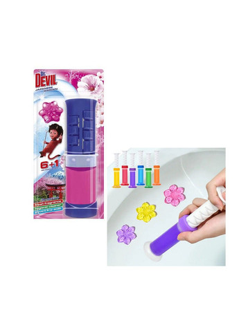 Туалетний точковий блок для унітазу Dr.Devil (Др.Девіль) Японський сад приємно пахне та підтримує гігієнічну чистоту туалету. Основні переваги: засіб забезпечує тривалу гігієнічну свіжість при кожному змиванні завдяки концентрованій формулі, утворює захисний шар проти накипу та бруду компактний розмір та легка установка роблять процес використання швидким та зручним інноваційна формула, точне дозування та відмінний аромат роблять цей засіб неперевершеним вибором для кожного, хто прагне високих стандартів гігієни. Спосіб застосування: видавити 1-ну порцію засобу згідно з інструкцією в місце, де тече більше води. За допомогою блоку-дозатора нанесіть квітку з обох боків чаші для рівномірного чищення всього туалету. Характеристики Об'єм: 45 мл Виробник: Dr.Devil, Чехія.