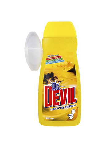 Гель для туалету Dr.Devil (Доктор Девіл) 3в1 має приємний запах, очищає, запобігає утворенню вапняного нальоту. Основні переваги: забезпечує сяючий блиск і тривалу свіжість утворює пишну піну, бореться із забрудненнями, очищає унітаз при кожному змиванні запобігає утворенню вапняного нальоту дарує стійкий аромат свіжості Спосіб застосування: підвісити блок на обідок унітазу, в місце, де тече більше води. Поповнити кошик гелем можна, не торкаючись поверхні унітаза. Характеристики Об'єм: 400 мл Виробник: Dr.Devil, Чехия.