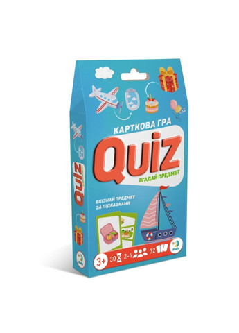 Вікторина: Вгадай предмет! — це захоплива карткова гра, яка перетворює розгадування загадок на веселу пригоду! Твоє завдання — за трьома підказками на картці здогадатися, про кого або що йде мова. Кожна правильна відповідь наближає тебе до перемоги. Як грати: Перемішай карти та поклади їх стосиком «загадками» догори. Тягни карту по черзі. На кожній картці три зображення слугують підказками. Уважно розглянь підказки та спробуй відгадати, про який предмет або кого йде мова. Здогадався? Перегорни картку, щоб перевірити відповідь. Якщо вона правильна — картка твоя! Гра розвиває увагу, логіку, спостережливість та кмітливість, роблячи процес навчання веселим та захопливим. Характеристики: Габарити: довжина: 19 Габарити: ширина: 11 Габарити: висота: 3 Стан: нове Вікова група: Від 3 років Мови: Українська Матеріал: Комбінований Тип: Настільна гра Колір: Різні кольори Упаковка: Картонна коробка Вид: Карточні ігри Призначення: Для дітей Вік: Від 3-х років Жанр: Розвиваючі Гарантія: 14 днів Стать: Унісекс Час гри: від 30 хв. Кількість гравців: 2-6 Країна реєстрації бренду: Україна Країна-виробник товару: Україна