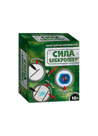 Хто любить експериментувати і пізнавати нове - ми з вами йдемо в одному напрямку! Чи знаєте ви що таке провідники і діелектрики? Що все метали, розчини солей і кислот, вологий грунт і людське тіло дуже добре проводять електричний струм? Пропонуємо поекспериментувати разом з набором «Сила електролізу» і все дізнатися! Створіть лампочку, яка запрацює від води, простежте за рухом іонів в рідині, отримаєте хлор і кисень ... Вперед, до нових звершень! Набір містить -чашку Петрі - контакти для батарейки типу «крона» з зажимами (червоний і чорний) -світлодіоід -графітові стрижні хлорид натрію -сільфат міді - мірний стаканчик -ложка для реактивів -фільтрувальній папір - піпетку -мідну дріт - покрокову інструкцію Три захоплюючі експерименти в наборі: • Електроліт • Рух іонів • Видобуток міді.