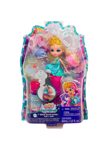Кожен із мешканців країни Enchantimals має міцний зв'язок з іншими чарівними істотами. Лялечки та їх друзі дуже схожі. Лялька Enchantimals Bubblin’ Atlantia Mermaid та маленький Кит з серії Ocean Kingdom - найкращі друзі. Вони зібралися, аби відправитися в плавання глибинами океану. Подорож набагато цікавіша, якщо захопити з собою мильні бульбашки: - Відкрий пляшечку з мильними бульбашками та налий речовину в мушлю - Опусти до мушлі ротик кита - Стисни русалчин хвостик, щоби видути бульбашки з роту кита Русалка Atlantia вдягнена в вбрання у морській тематиці. Вона має багато спільного з другом-китом: блакитний топ з воланами та принтом з морських зірок, макіяж з краплями морської води, корона с мушлями. В ігровому наборі: - Лялька Enchantimals Bubblin’ Atlantia Mermaid Ocean Kingdom - Фігурка кита - Флакончик із мильними бульбашками Матеріал: легкий гіпоалергенний пластик, безпечний для дитини Рекомендований вік: 3+ років